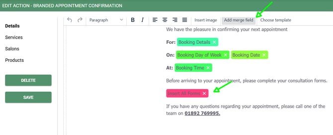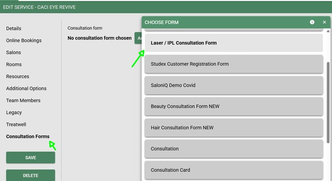 If you need any further help with attaching consultation forms to services, please call 01892 280 123 or email help@saloniq.com