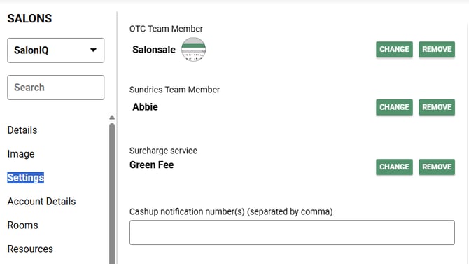 Select Menu > Settings > Salons > Settings
