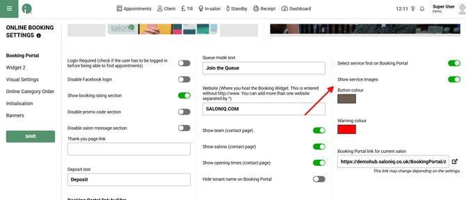 To show your service images online go to Menu > Settings > Online > Booking Portal. Turn the toggle to green to show your serviced online.