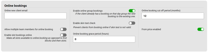 Online Booking Grace Period - If you don't allow clients to book on the same day you would enter in 24 hours.