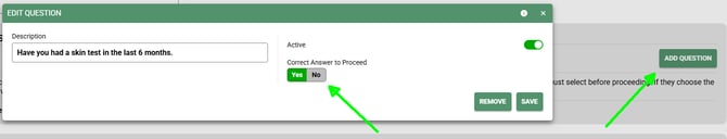 Switch the “Skin test required” toggle to green, then click Save. Repeat this for every service that requires a skin test.