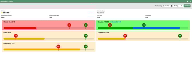 This guide will walk you through the Salon and Team Dashboard and show you how to customise the KPIs.